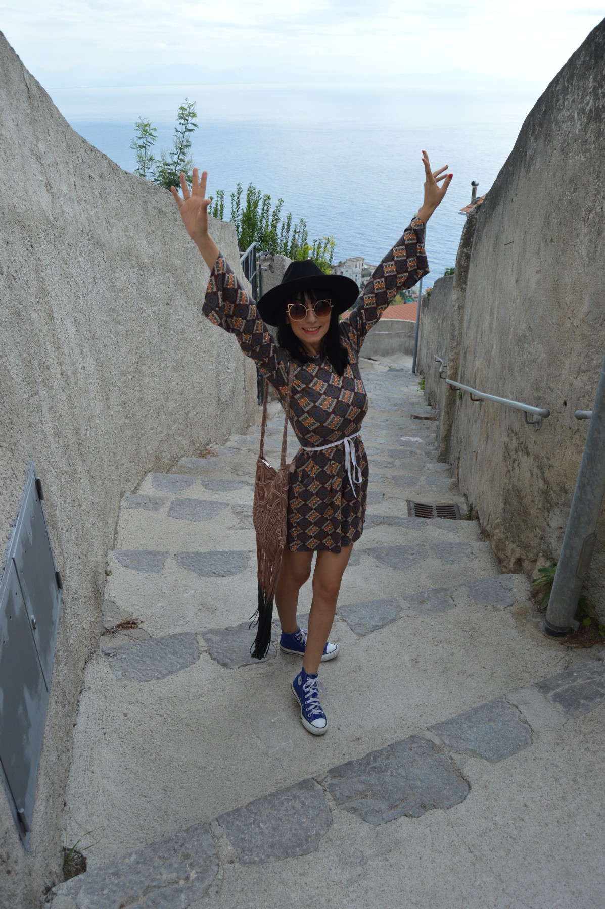 DN: Strictul necesar. Am invatat sa calatoresc doar cu rucsac. Ce-i drept, in ultimul timp n-am stat mai mult de o saptamana plecata, fiind vorba de destinatii din Europa. Dar, nu stiu cum, cand vine vorba de bagaj, ma organizez foarte bine. Outfit-uri gandite pe zile, putine cosmetice, prefer sa cumpar gel de dus din orasul respectiv, de exemplu, sau fixativ (sunt dependenta de fixativ :D). Cu palariile am o problema pentru ca, evident, nu incap in rucsac si s-ar strica forma daca le indes. Asa ca port mai multe palarii pe cap :)) Cel mai mult am purtat trei. Se vedeau marginile de alte culori, dar in rest eram foarte cool.